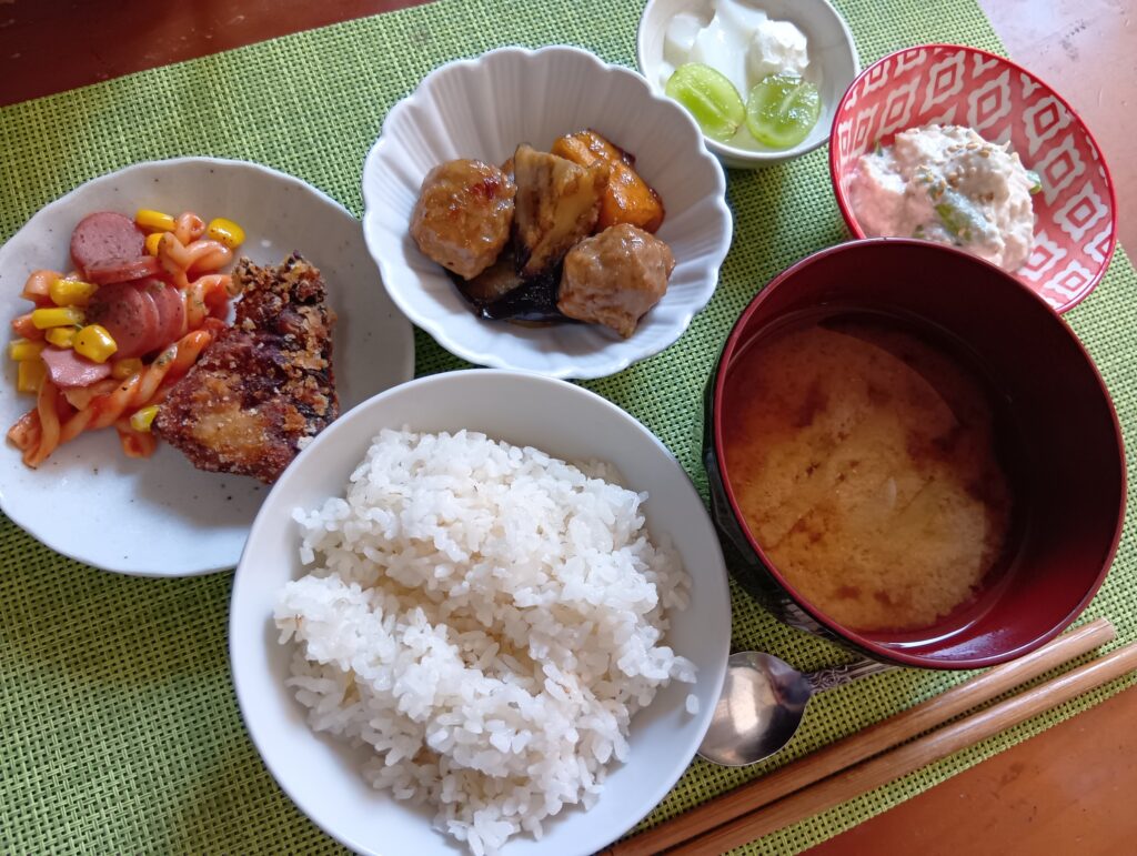 2025年9月16日 / 最終更新日時 : 2025年9月19日 minamiooizumikapp 今日のお昼ごはん 肉団子と厚揚げのオイスター炒め、鯖の竜田揚げ、マカロニアラビアータ、ほうれん草とカニカマの白和え、シャインマスカット乗せミルクゼリー、お味噌汁、ごはんFacebookXBlueskyHatenaCopy