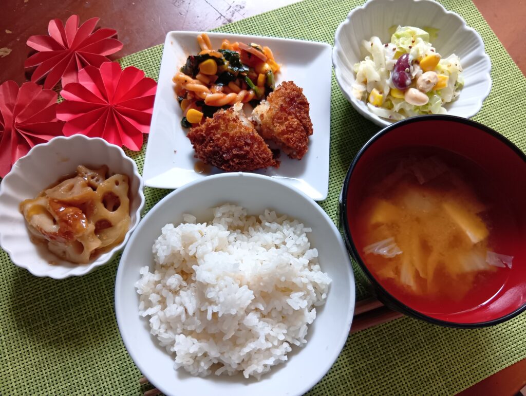 2025年9月19日 / 最終更新日時 : 2025年9月19日 minamiooizumikapp 今日のお昼ごはん メンチカツ、マカロニアラビアータ、れんこんとちくわのきんぴら風、コーンとサラダ豆のコールスロー、お味噌汁、ごはんFacebookXBlueskyHatenaCopy