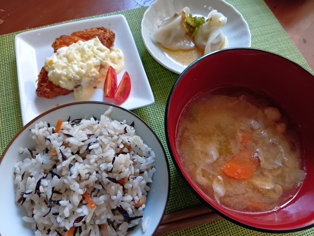 2025年10月28日 / 最終更新日時 : 2025年10月28日 minamiooizumikapp 今日のお昼ごはん サーモンフライ タルタルソース、つるモチ水餃子、具沢山豚汁、ひじきごはんFacebookXBlueskyHatenaCopy