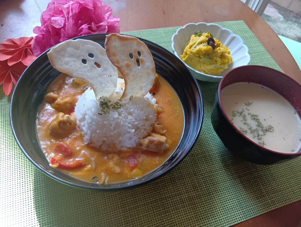 2025年10月30日 / 最終更新日時 : 2025年10月30日 minamiooizumikapp 今日のお昼ごはん ハロウィンイブメニュー!かぼちゃとチキンのトマトクリーム煮、デリ風かぼちゃサラダ、かぼちゃとキノコの味噌ミルクスープFacebookXBlueskyHatenaCopy