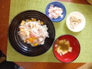 2025年12月1日 / 最終更新日時 : 2025年12月1日 minamiooizumikapp 今日のお昼ごはん 鶏と厚揚げのガリバタキャベツ炒め、ひじきとちくわの白和え、カリフラワー和えマカロニサラダ、揚げ茄子のお味噌汁、ごはんFacebookXBlueskyHatenaCopy