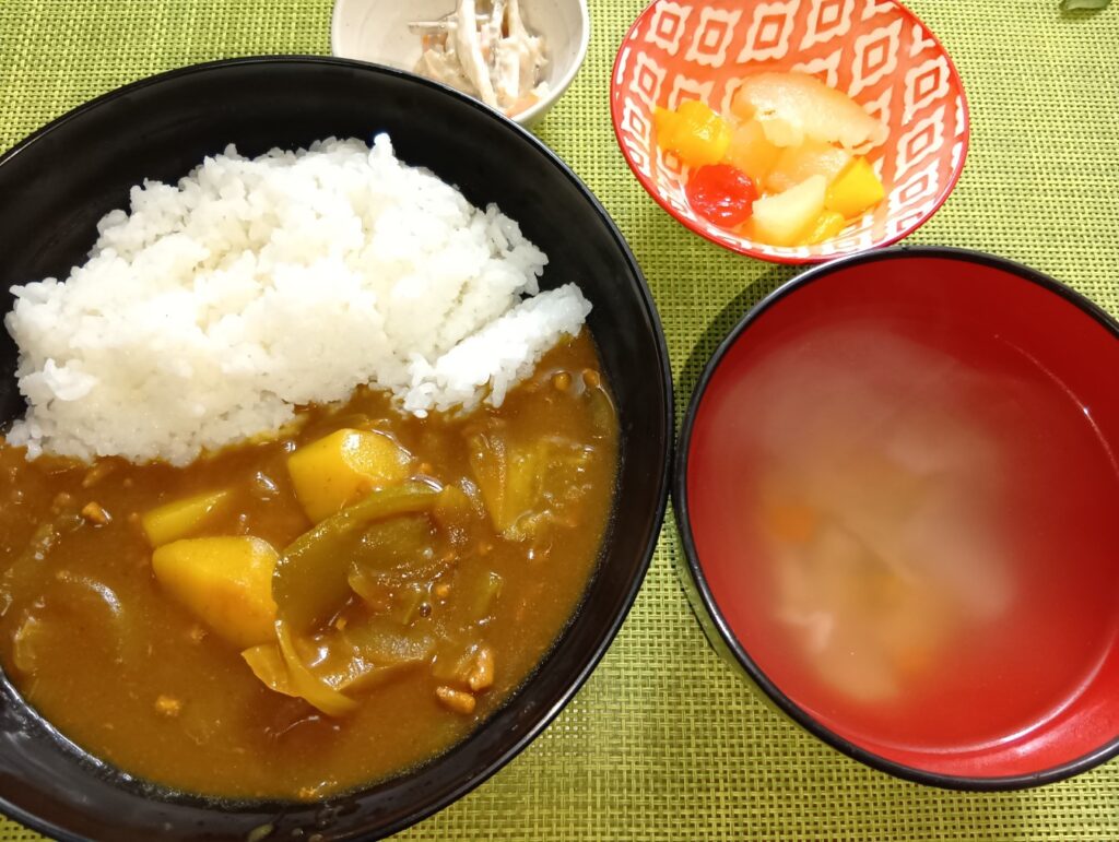 • カレーライス/ゴボウサラダ/大根とベーコンのスープ/フルーツポンチ/16日