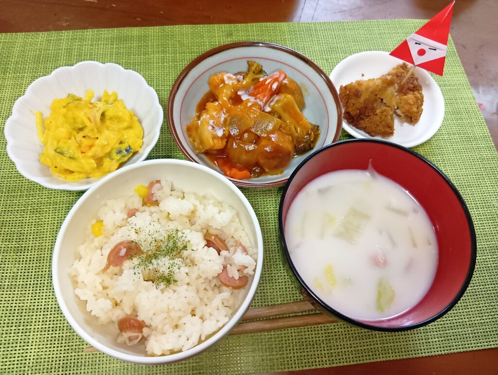 2025年12月24日 / 最終更新日時 : 2025年12月24日 minamiooizumikapp 今日のお昼ごはん Christmas Eve Menu🎄 デミグラス煮込みミートボール、カボチャのデリ風サラダ、メンチカツ、ウインナーピラフ、白菜とベーコンのミルクスープFacebookXBlueskyHatenaCopy