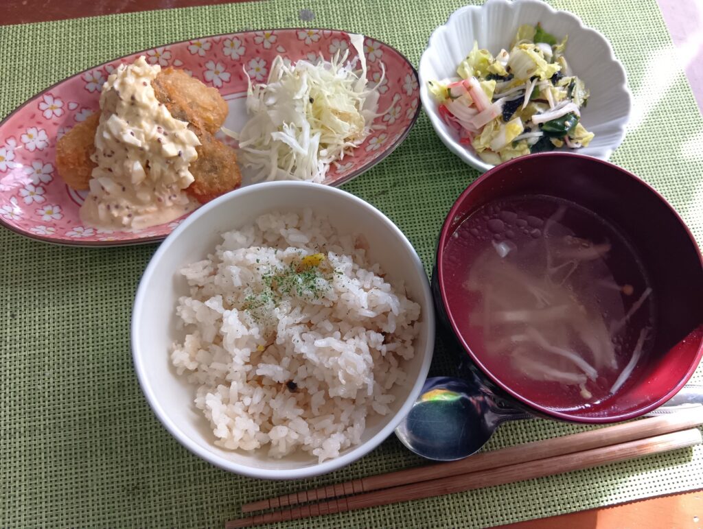 2026年1月22日 / 最終更新日時 : 2026年1月22日 minamiooizumikapp 今日のお昼ごはん アジフライ、粒マスタードタルタルソース、白菜とカニカマとわかめの和物、コンソメスープ、ピラフFacebookXBlueskyHatenaCopy