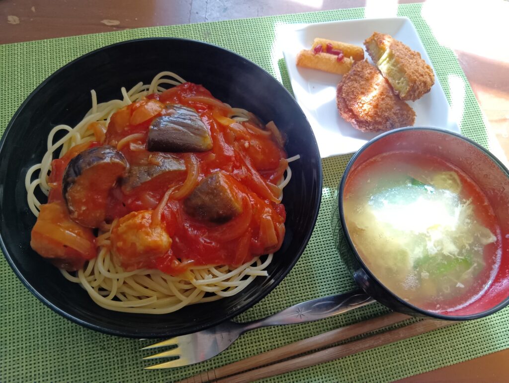 2026年2月14日 / 最終更新日時 : 2026年2月14日 minamiooizumikapp 今日のお昼ごはん 肉団子と茄子のガーリックトマトパスタ、カレーコロッケ、チーズスティック、オクラと卵のスープFacebookXBlueskyHatenaCopy