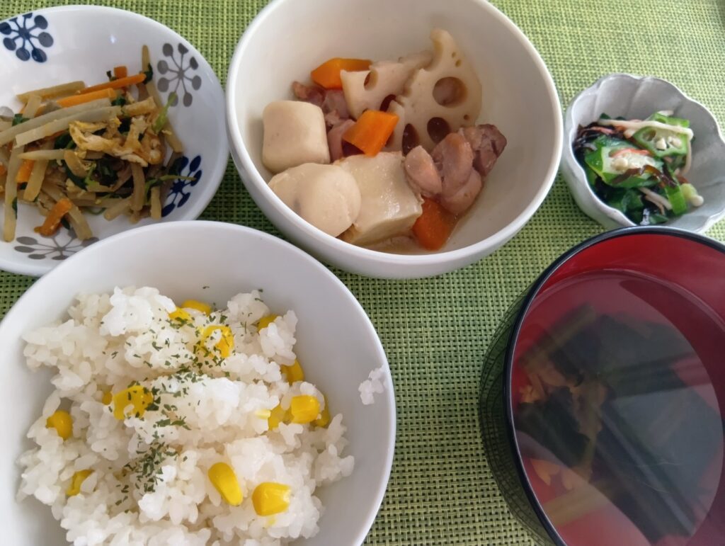 2026年2月23日 / 最終更新日時 : 2026年2月23日 minamiooizumikapp 今日のお昼ごはん とうもろこしご飯定食煮物豆苗の金平オクラの塩昆布あえあさり汁FacebookXBlueskyHatenaCopy