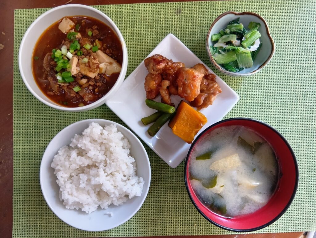 2026年3月19日 / 最終更新日時 : 2026年3月19日 minamiooizumikapp 今日のお昼ごはん 鳥の照り焼きとかぼちゃの煮物、麻婆豆腐、小松菜のごまドレッシング和え、大根と油揚げの味噌汁FacebookXBlueskyHatenaCopy
