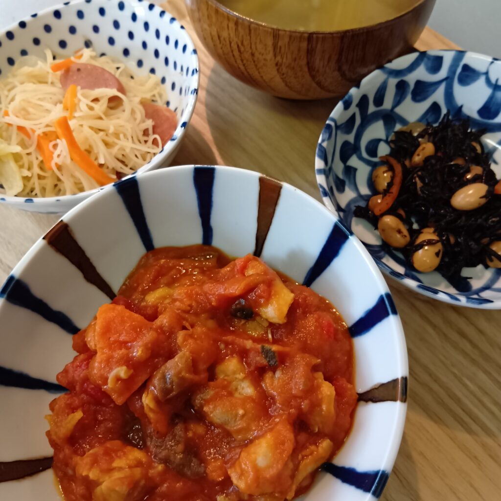 2025年9月26日 / 最終更新日時 : 2025年9月26日 asagaya3bell 今日のお昼ごはん 鶏肉と根菜のトマト煮 焼きビーフン ひじき煮 御飯 お味噌汁FacebookXBlueskyHatenaCopy