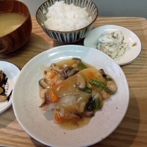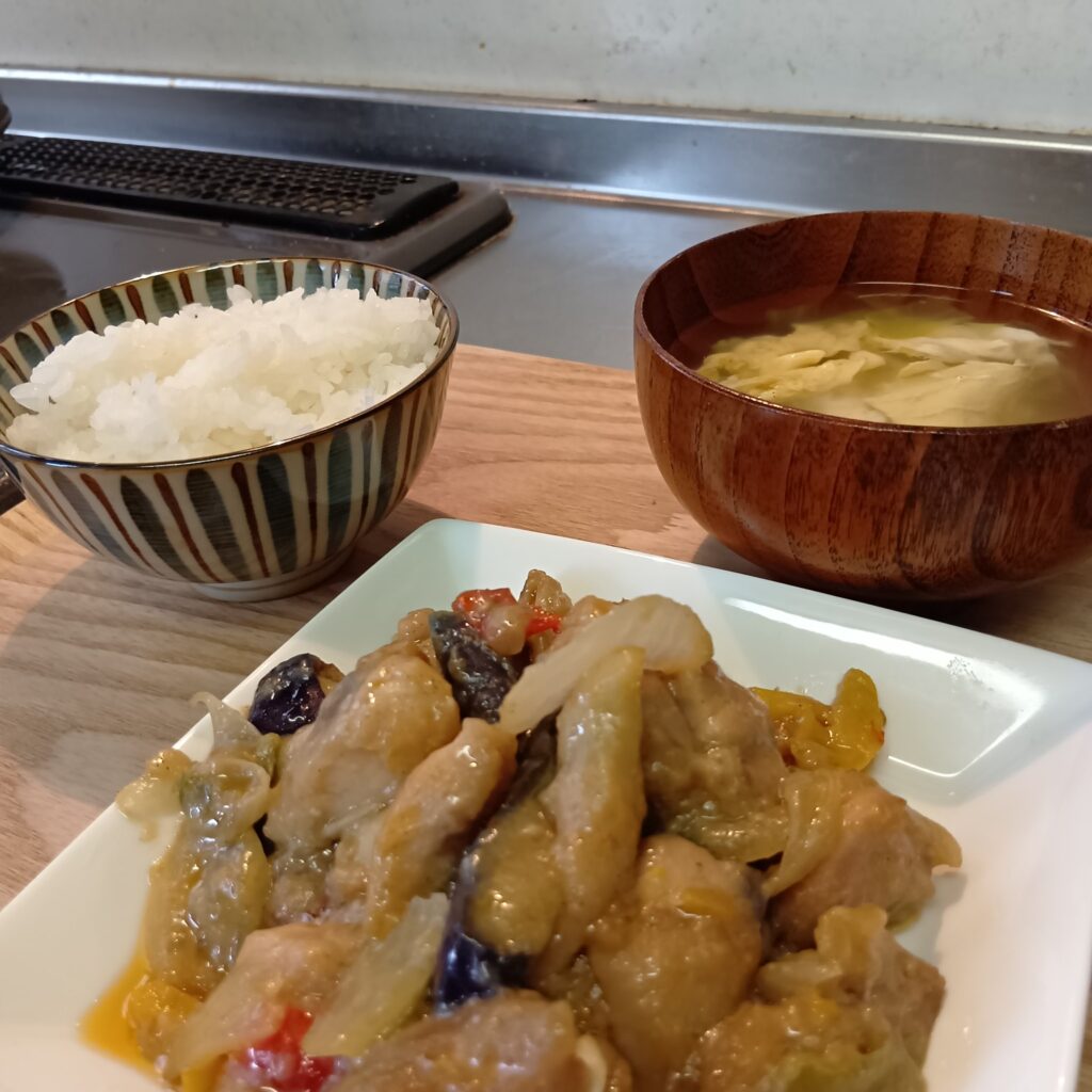 2025年10月10日 / 最終更新日時 : 2025年10月10日 asagaya3bell 今日のお昼ごはん 鶏肉と茄子、パプリカの味噌炒め、ひじき煮、春雨サラダ、キャベツと卵の鶏ガラスープFacebookXBlueskyHatenaCopy