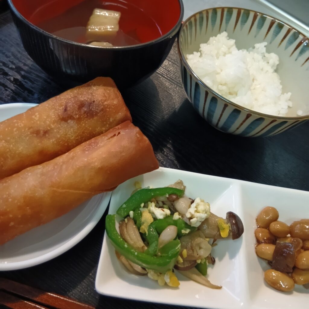 2025年10月23日 / 最終更新日時 : 2025年10月23日 asagaya3bell 今日のお昼ごはん 春巻き ピーマンときのこの炒め物 大豆煮 御飯 お吸い物FacebookXBlueskyHatenaCopy