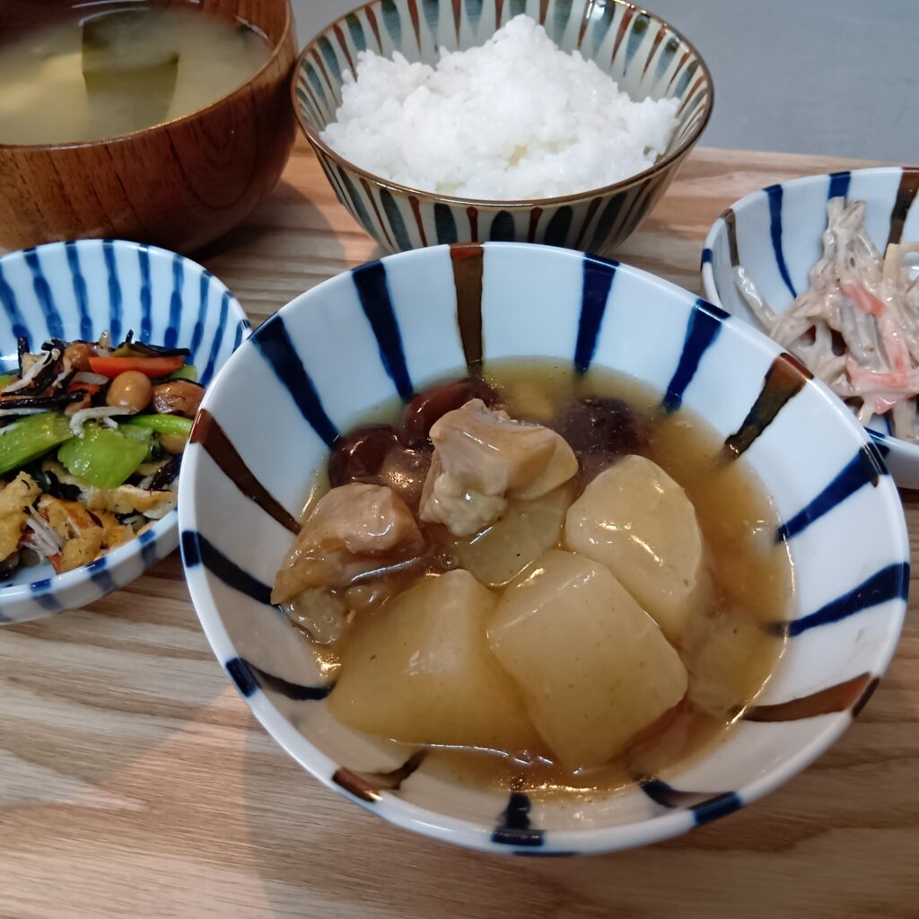 2025年12月4日 / 最終更新日時 : 2025年12月4日 asagaya3bell 今日のお昼ごはん 大根、椎茸と鶏肉の煮物、小松菜の炒め物、ごぼうサラダ、御飯、味噌汁FacebookXBlueskyHatenaCopy