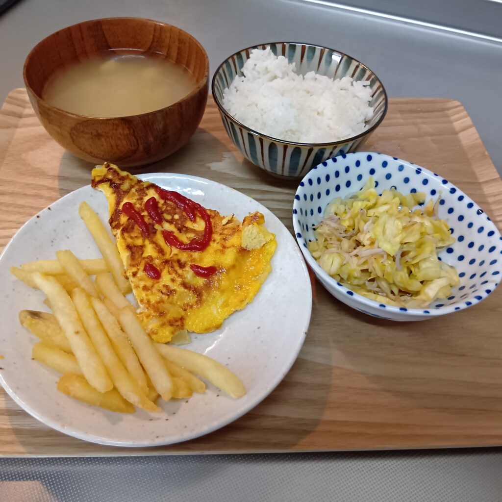 2026年3月12日 / 最終更新日時 : 2026年3月12日 asagaya3bell 今日のお昼ごはん スペイン風オムレツのポテトフライ添、キャベツのポン酢和え、御飯、味噌汁FacebookXBlueskyHatenaCopy