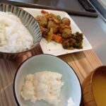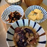 鶏肉と茄子の甘酢かけ 白和え ワカメスープ