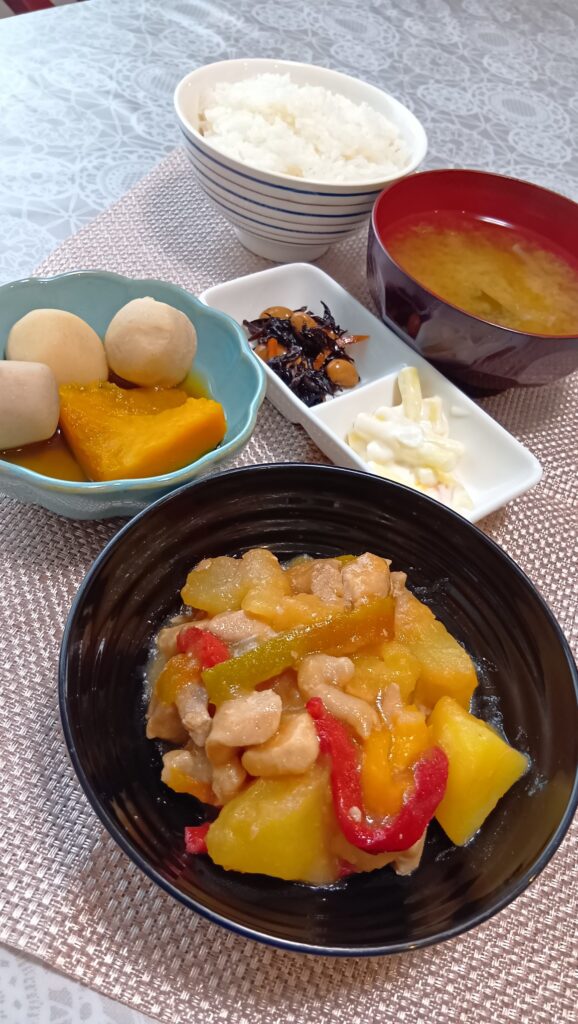 2025年10月20日 / 最終更新日時 : 2025年10月20日 asaka3bell 今日のお昼ごはん 鶏肉と芋の中華炒め、里芋煮、ひじき煮、マカロニサラダ、お味噌汁FacebookXBlueskyHatenaCopy