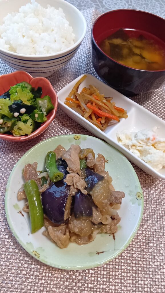 2025年11月15日 / 最終更新日時 : 2025年11月15日 asaka3bell 今日のお昼ごはん 豚肉となすの味噌炒め、ブロッコリーのポン酢和え、ポテトサラダ、金平、お味噌汁FacebookXBlueskyHatenaCopy