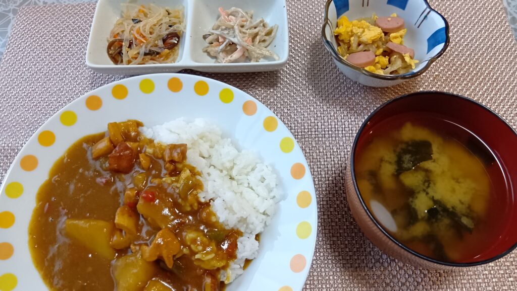 2025年11月28日 / 最終更新日時 : 2025年11月28日 asaka3bell 今日のお昼ごはん 彼のカレーライス、モヤッとしないモヤシ炒め、ゴボウサラダ、春雨の酢の物、ミソスープププ!FacebookXBlueskyHatenaCopy