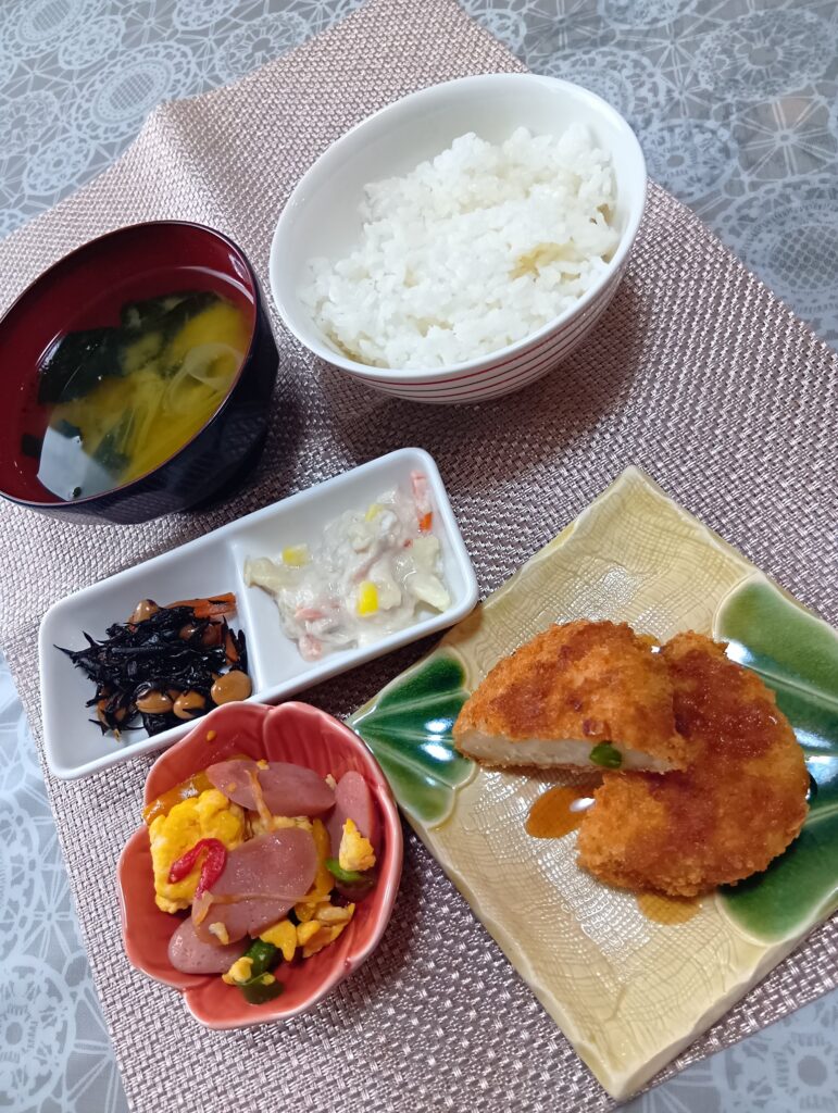 2025年12月27日 / 最終更新日時 : 2025年12月27日 asaka3bell 今日のお昼ごはん 野菜コロッケ、玉子とウィンナー炒め、ひじき煮、ツナマカロニサラダ、お味噌汁FacebookXBlueskyHatenaCopy