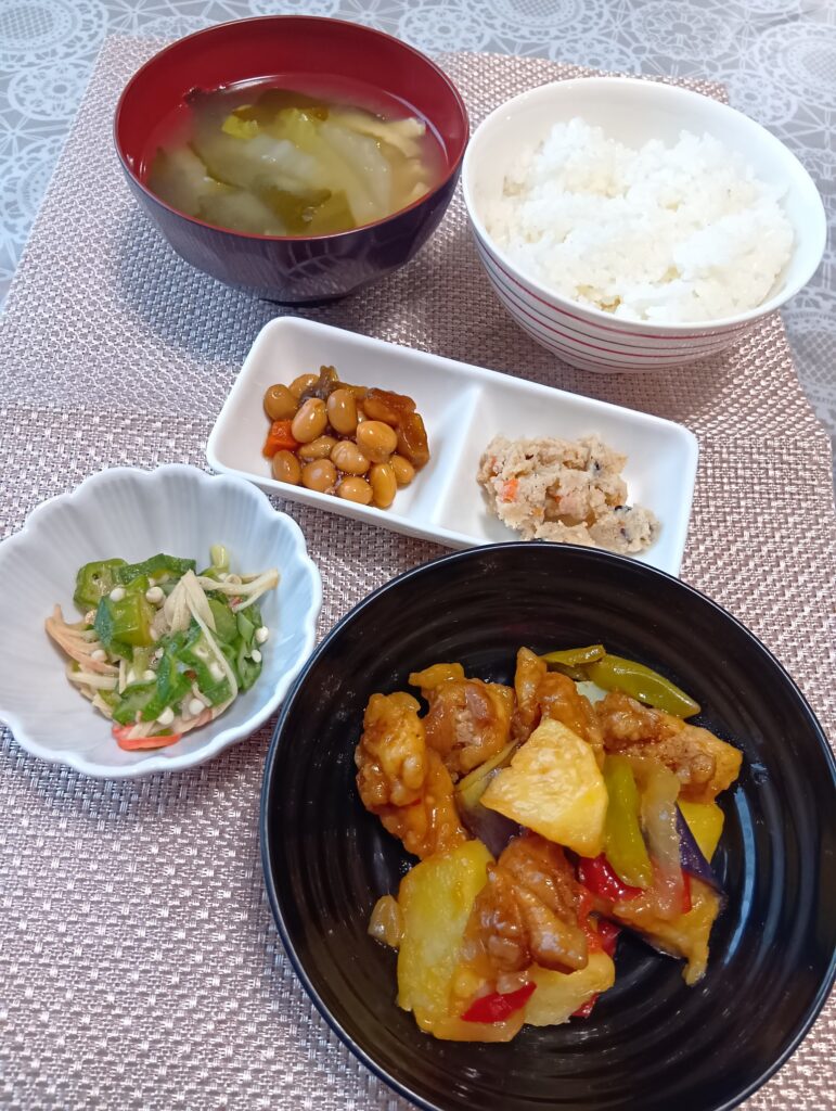2026年1月17日 / 最終更新日時 : 2026年1月17日 asaka3bell 今日のお昼ごはん 鶏肉と野菜の甘酢炒め、オクラのポン酢和え、大豆煮、うの花、お味噌汁FacebookXBlueskyHatenaCopy