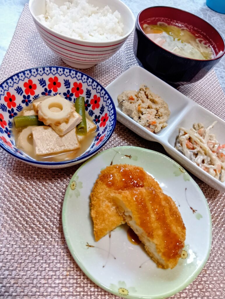 2026年2月7日 / 最終更新日時 : 2026年2月7日 asaka3bell 今日のお昼ごはん 野菜コロッケ、厚揚げ煮、ゴボウサラダ、うの花、豚汁FacebookXBlueskyHatenaCopy