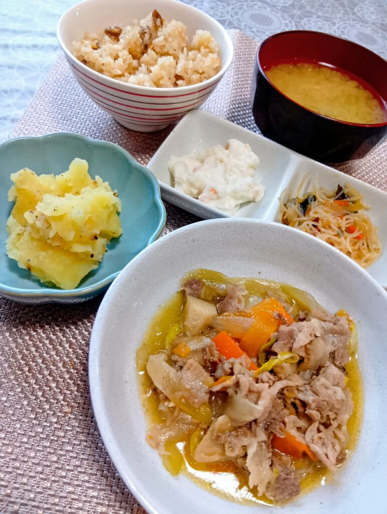 2026年2月13日 / 最終更新日時 : 2026年2月13日 asaka3bell 今日のお昼ごはん 肉野菜炒め、粉ふき芋、春雨の酢の物、ポテトサラダ、豆御飯、お味噌汁FacebookXBlueskyHatenaCopy