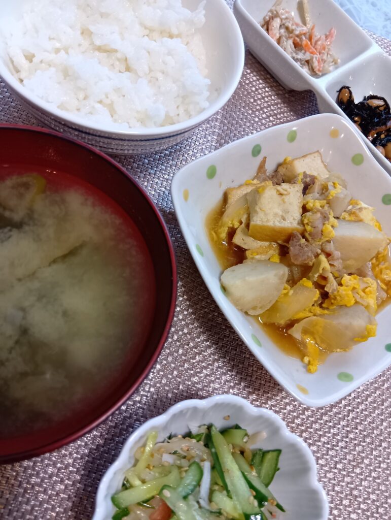 2026年3月5日 / 最終更新日時 : 2026年3月5日 asaka3bell 今日のお昼ごはん 豚肉と厚揚げの玉子とじとじ、モヤシとキュウリのナム〜ル、じきにひじき煮、ゴボッとゴボウサラダ、ミソスープププ、ライス!FacebookXBlueskyHatenaCopy