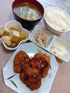 2026年3月13日 / 最終更新日時 : 2026年3月13日 asaka3bell 今日のお昼ごはん まぐろカツ、じゃがパプリカのマヨ金平、切干大根、ポテトサラダ、ごはん、味噌汁FacebookXBlueskyHatenaCopy