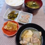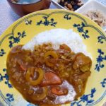 カレーライス、タラモサラダ、ひじき煮、味噌汁