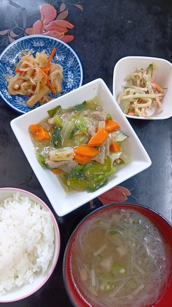 2025年9月18日 / 最終更新日時 : 2025年9月18日 higashikurumechuo 今日のお昼ごはん 東久留米中央OR豚肉と白菜中華炒めごぼうサラダ切り干し大根オクラスープFacebookXBlueskyHatenaCopy