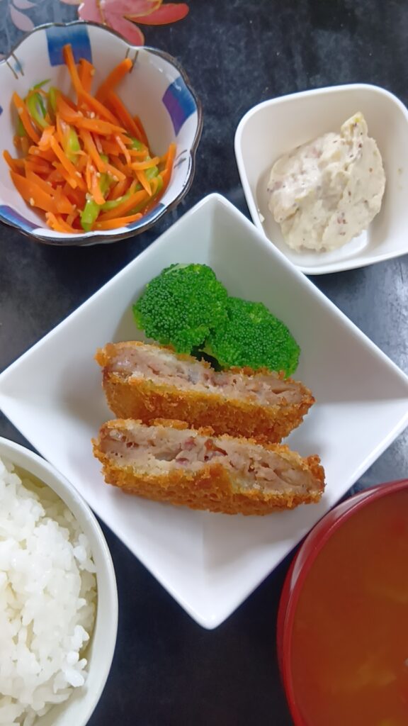 2025年9月29日 / 最終更新日時 : 2025年9月29日 higashikurumechuo 今日のお昼ごはん 東久留米中央ORメンチカツジャーマンポテトサラダ人参とキュウリのナムルトマトスープFacebookXBlueskyHatenaCopy