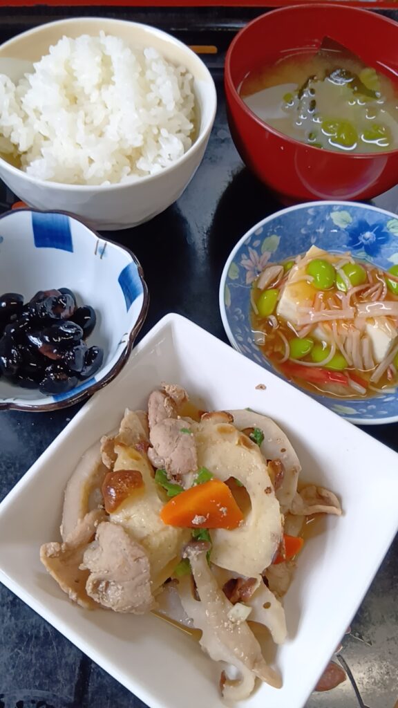 2025年10月6日 / 最終更新日時 : 2025年10月6日 higashikurumechuo 今日のお昼ごはん 東久留米中央豚肉とれんきんの旨煮黒豆豆腐のカニカマあんかけ味噌汁ご飯ORFacebookXBlueskyHatenaCopy