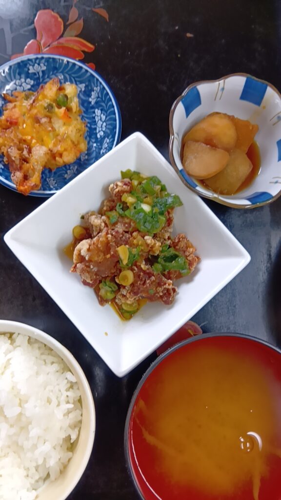 2025年10月13日 / 最終更新日時 : 2025年10月13日 higashikurumechuo 今日のお昼ごはん 東久留米中央OR豚肉の唐揚げネギソースミックスベジタブルのかき揚げ里芋煮っころがし味噌汁FacebookXBlueskyHatenaCopy