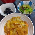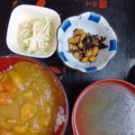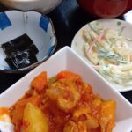 チキンカレー 大根サラダ ひじき煮 わかめスープ