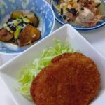 カレーコロッケ 茄子の南蛮漬け 白菜と豆腐のポン酢サラダ 玉ねぎの味噌汁 ご飯