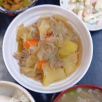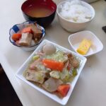2025年11月7日 / 最終更新日時 : 2025年11月7日 higashikurumechuo 今日のお昼ごはん東久留米中央 鶏肉とキャベツバター炒め いんげんの胡麻和え マカロニサラダ お味噌汁