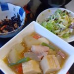 2025年12月23日 / 最終更新日時 : 2025年12月23日 higashikurumechuo 今日のお昼ごはん東久留米中央 鶏肉と根菜の味噌煮込み 茄子の煮浸し 切り干し大根 白菜と豆腐のスープ