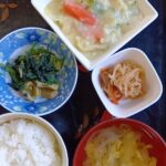 2026年1月30日 / 最終更新日時 : 2026年1月30日 higashikurumechuo 今日のお昼ごはん東久留米中央 鶏肉と白菜のクリームシチュー 切り干し大根 ほうれん草のバター炒め 玉子スープ