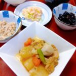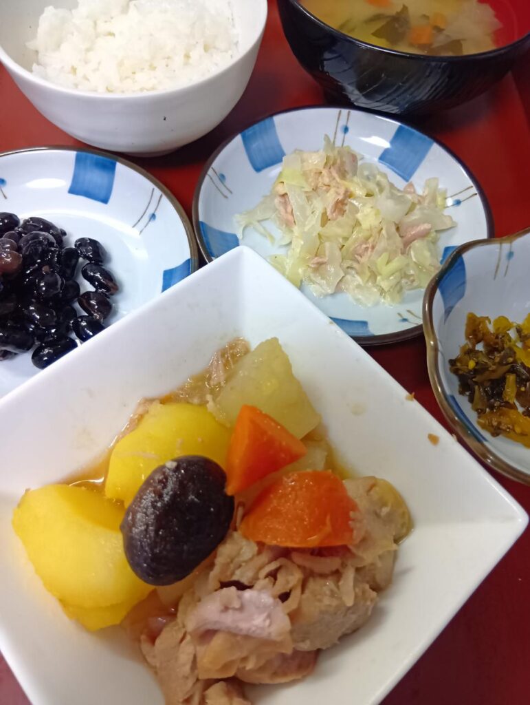 2025年9月24日 / 最終更新日時 : 2025年9月26日 kappa3bell 今日のお昼ごはん 鶏肉の根菜煮、ツナサラダ、キャベツとわかめの味噌汁、選べる小鉢(高菜漬けor黒豆)鶏肉の根菜煮ツナサラダキャベツとわかめの味噌汁選べる小鉢(高菜漬けor黒豆)FacebookXBlueskyHatenaCopy