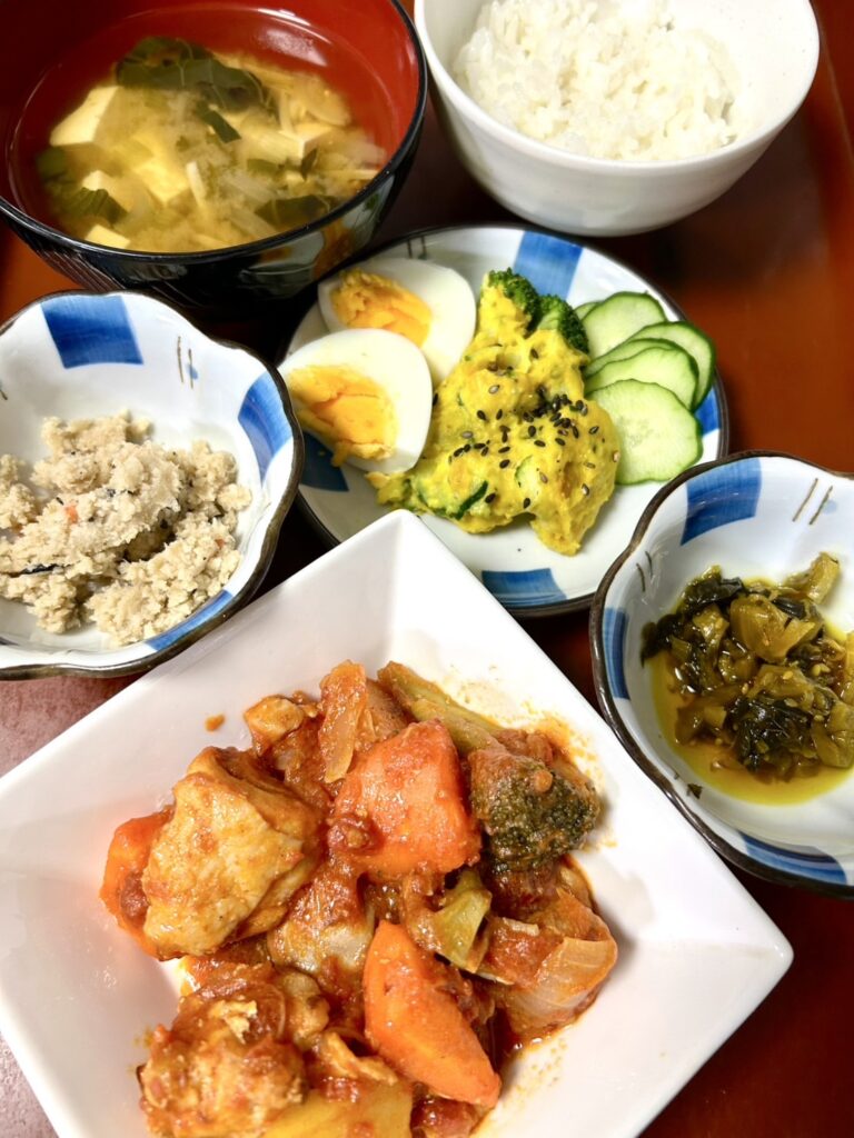 2025年9月30日 / 最終更新日時 : 2025年10月1日 kappa3bell 今日のお昼ごはん 鶏肉と彩り野菜のトマト煮、かぼちゃサラダ、小松菜と豆腐のお味噌汁、選べる小鉢「卯の花or高菜漬け」鶏肉と彩り野菜のトマト煮かぼちゃサラダ小松菜と豆腐のお味噌汁選べる小鉢「卯の花or高菜漬け」FacebookXBlueskyHatenaCopy