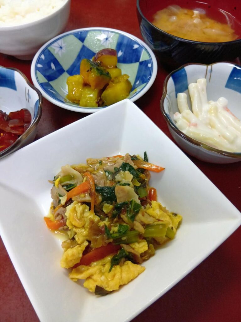 2025年10月8日 / 最終更新日時 : 2025年10月8日 kappa3bell 今日のお昼ごはん 豚肉と高菜の卵炒め、さつま芋とかぼちゃの甘だれがけ、キャベツとあげの味噌汁、選べる小鉢(赤かっぱorマカロニサラダ)豚肉と高菜の卵炒めさつま芋とかぼちゃの甘だれがけキャベツとあげの味噌汁選べる小鉢(赤かっぱorマカロニサラダ)FacebookXBlueskyHatenaCopy