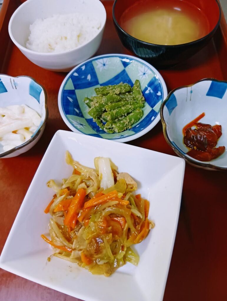 2025年11月7日 / 最終更新日時 : 2025年11月7日 kappa3bell 今日のお昼ごはん 本日は ” 立冬 “ぽかぽか陽気と温かい食事で冬を迎えます(^^)・豚肉とたっぷり野菜のとろみ炒め・いんげんと胡麻の和え物・大根と油揚げの味噌汁・選べる副菜 (マカロニサラダor赤かっぱ漬)FacebookXBlueskyHatenaCopy