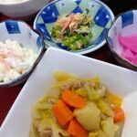 2025年11月13日 / 最終更新日時 : 2025年11月13日 kappa3bell 今日のお昼ごはん 鶏肉と根菜の煮物、ほうれん草とカニカマのなめ茸和え、じゃが芋と揚げの味噌汁、選べる小鉢(黒豆orさくら漬け)鶏肉と根菜の煮物ほうれん草とカニカマのなめ茸和えじゃが芋と揚げの味噌汁選べる小鉢(黒豆orさくら漬け)FacebookXBlueskyHatenaCopy