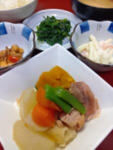 2025年11月23日 / 最終更新日時 : 2025年11月24日 kappa3bell 今日のお昼ごはん 鶏肉と根菜の和風煮、白菜と豆腐のとろとろ和え、じゃがいもと油揚げの味噌汁、選べる小鉢(五目豆or春雨サラダ)鶏肉と根菜の和風煮白菜と豆腐のとろとろ和えじゃがいもと油揚げの味噌汁選べる小鉢(五目豆or春雨サラダ)FacebookXBlueskyHatenaCopy