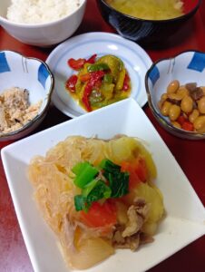 2025年11月24日 / 最終更新日時 : 2025年11月24日 kappa3bell 今日のお昼ごはん 茹で鶏と大根.かぼちゃの煮付け、春菊の胡麻和え、もやしと揚げの味噌汁、選べる小鉢(大豆五目煮orマカロニサラダ)茹で鶏と大根.かぼちゃの煮付け春菊の胡麻和えもやしと揚げの味噌汁選べる小鉢(大豆五目煮orマカロニサラダ)FacebookXBlueskyHatenaCopy