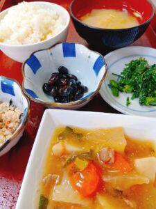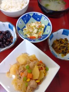 2025年12月3日 / 最終更新日時 : 2025年12月3日 kappa3bell 今日のお昼ごはん 豚肉とキャベツのちゃんちゃん焼き風、小松菜とちくわの胡麻和え、豆腐とわかめのお吸い物、選べる小鉢(高菜漬けor黒豆)豚肉とキャベツのちゃんちゃん焼き風小松菜とちくわの胡麻和え豆腐とわかめのお吸い物選べる小鉢(高菜漬けor黒豆)FacebookXBlueskyHatenaCopy