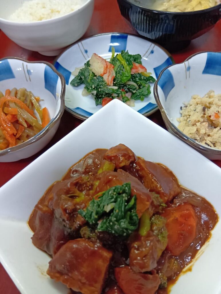 2026年1月3日 / 最終更新日時 : 2026年1月4日 kappa3bell 今日のお昼ごはん ハンバーグのデミグラスソース煮、ほうれん草とカニカマの胡麻和え、豆腐と揚げの味噌汁、選べる小鉢(卯の花orきんぴらごぼう)ハンバーグのデミグラスソース煮ほうれん草とカニカマの胡麻和え豆腐と揚げの味噌汁選べる小鉢(卯の花orきんぴらごぼう)FacebookXBlueskyHatenaCopy