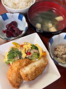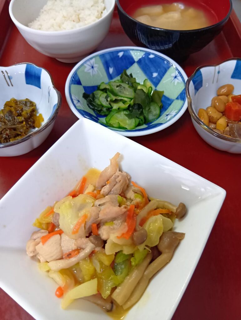 2026年1月14日 / 最終更新日時 : 2026年1月14日 kappa3bell 今日のお昼ごはん 鶏肉とキャベツのみそ炒め、きゅうりとわかめの酢の物、あげと大根の味噌汁、選べる小鉢(大豆煮or高菜漬け)鶏肉とキャベツのみそ炒めきゅうりとわかめの酢の物あげと大根の味噌汁選べる小鉢(大豆煮or高菜漬け)FacebookXBlueskyHatenaCopy