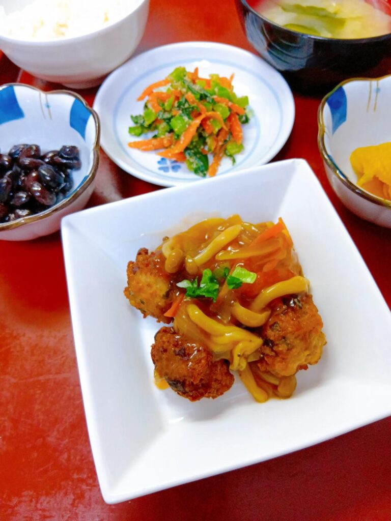 2026年1月21日 / 最終更新日時 : 2026年1月21日 kappa3bell 今日のお昼ごはん 肉団子の中華あんかけ、小松菜と人参の胡麻和え、白菜の味噌汁、選べる小鉢(黒豆orつぼ漬け)肉団子の中華あんかけ小松菜と人参の胡麻和え白菜の味噌汁選べる小鉢(黒豆orつぼ漬け)FacebookXBlueskyHatenaCopy