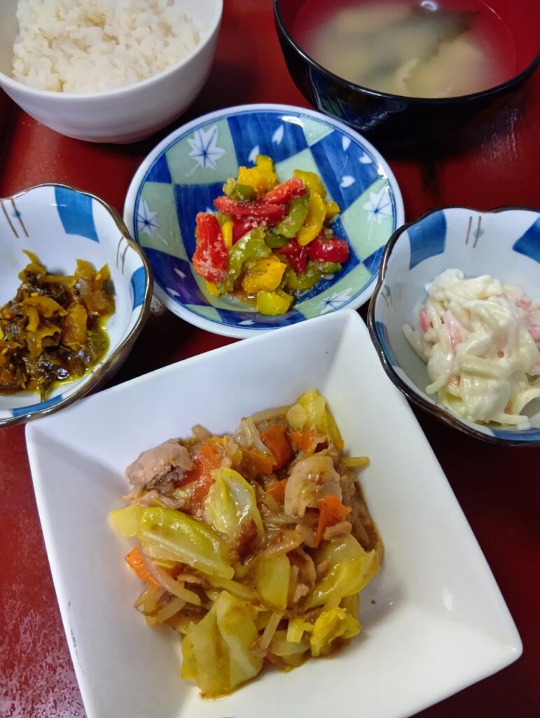 2026年2月6日 / 最終更新日時 : 2026年2月6日 kappa3bell 今日のお昼ごはん 豚肉とキャベツのとろみ炒め、パプリカのごまあえ、あげとわかめの味噌汁、選べる小鉢(スパゲティサラダor高菜漬け)豚肉とキャベツのとろみ炒めパプリカのごまあえあげとわかめの味噌汁選べる小鉢(スパゲティサラダor高菜漬け)FacebookXBlueskyHatenaCopy