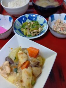 2026年3月7日 / 最終更新日時 : 2026年3月7日 kappa3bell 今日のお昼ごはん 鶏肉とちくわの里芋煮、切り干し大根煮物、わかめとキャベツの味噌汁、選べる小鉢(白花豆orさくら漬け)鶏肉とちくわの里芋煮切り干し大根煮物わかめとキャベツの味噌汁選べる小鉢(白花豆orさくら漬け)FacebookXBlueskyHatenaCopy