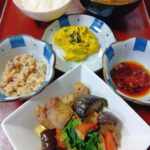 2025年9月23日 / 最終更新日時 : 2025年9月23日 kappa3bell ある日のできごと〜秋分の日〜 ・おはぎ・大根のそぼろ煮・玉子とかぼちゃのサラダ・小松菜とえのきの味噌汁・選べる小鉢 (福神漬けor赤かっぱ漬け)